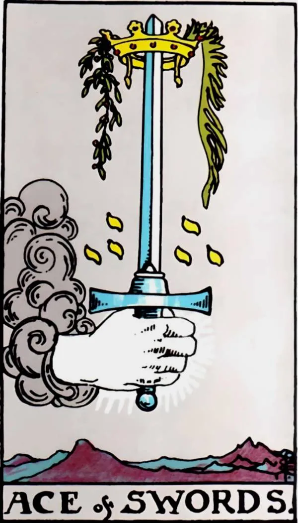 The primary symbol, an upright sword, signifies the clarity of thought and the intellect. It heralds a moment of revelation or new insights. The double-edged nature of the sword also represents duality, suggesting decisions that have both positive and negative consequences.